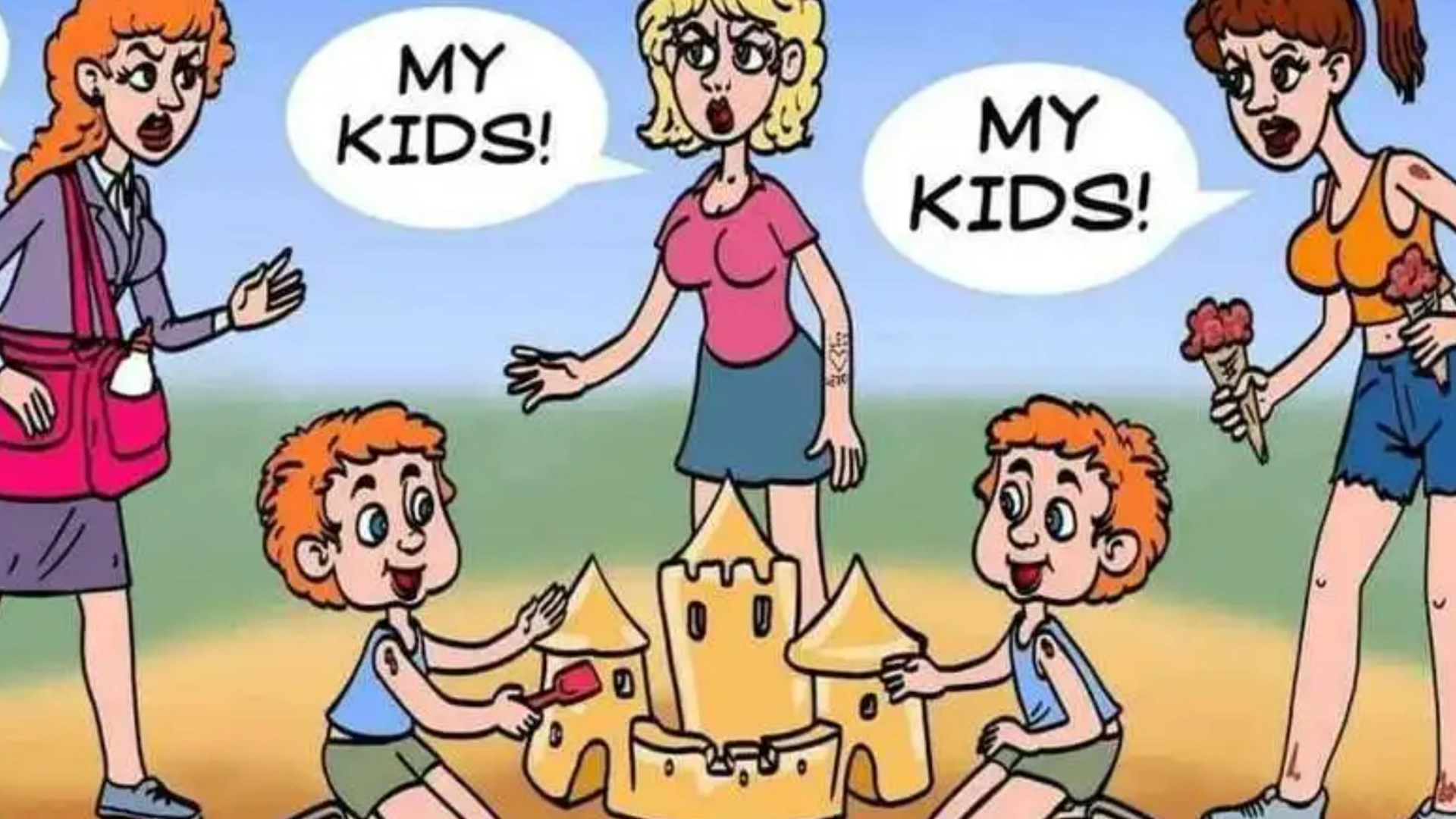 Everybody can see the three girls arguing over the tots enjoying within the sand – however solely these with a super-high IQ will be capable of work out who’s telling the reality in underneath 10 seconds.