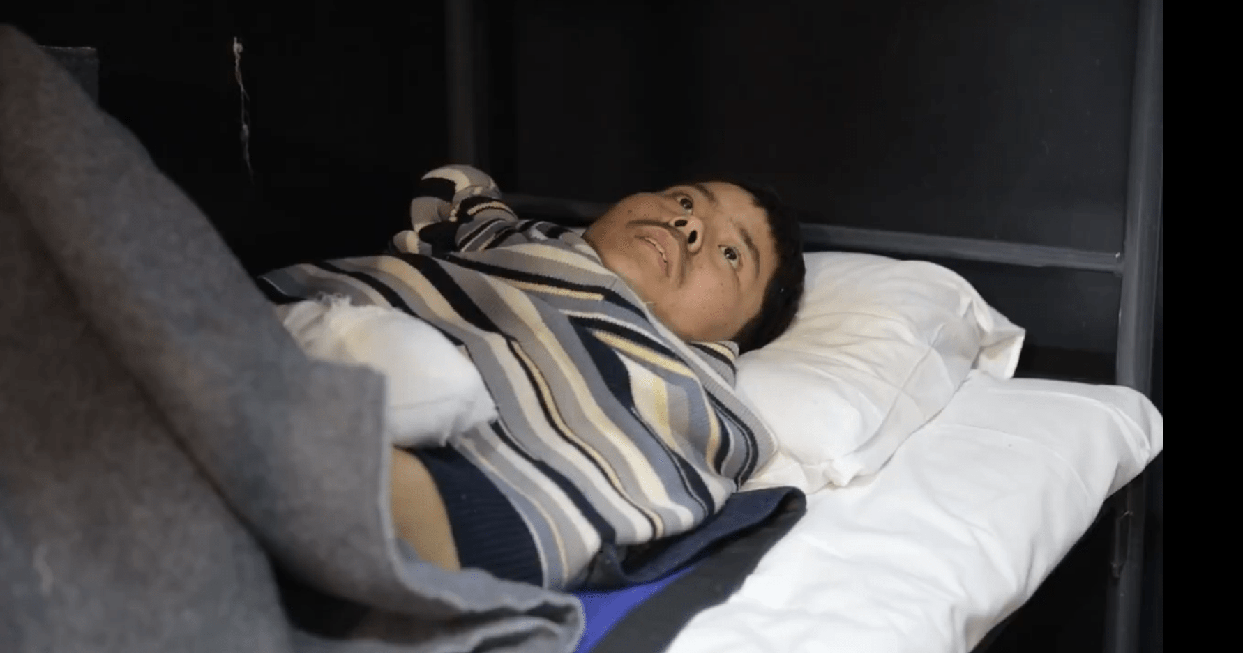 Talking by an interpreter, the soldier mendacity on a mattress says in Korean: “I wish to reside right here.”