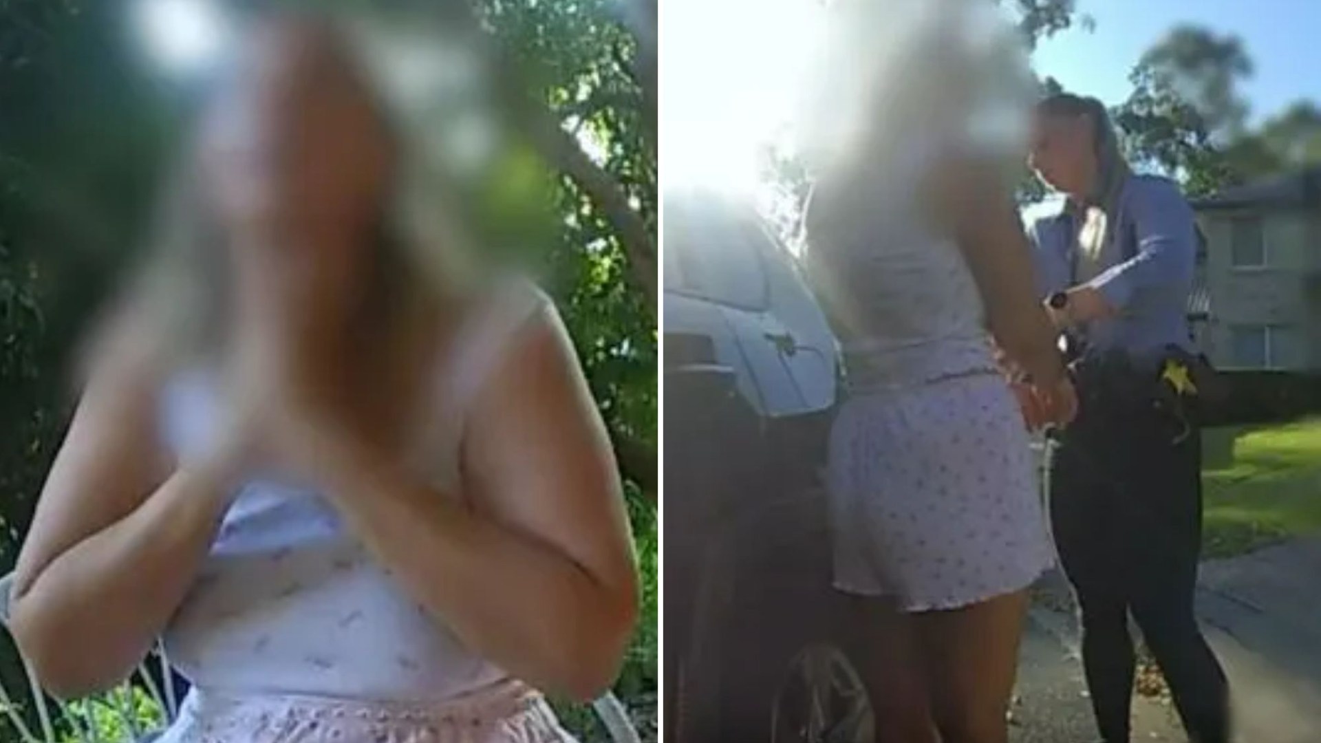Footage reveals the 34-year-old Aussie mum crying as cops put handcuffs on her earlier than bundling the social media persona right into a police automotive.