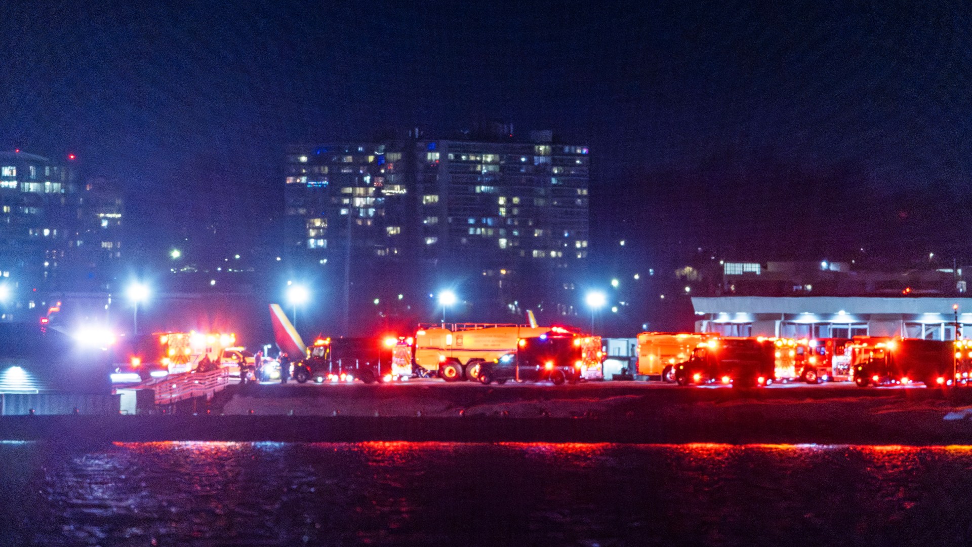 Dozens of police, ambulance and rescue models, some ferrying boats, have been seen racing to positions alongside the tarmac of Reagan airport.