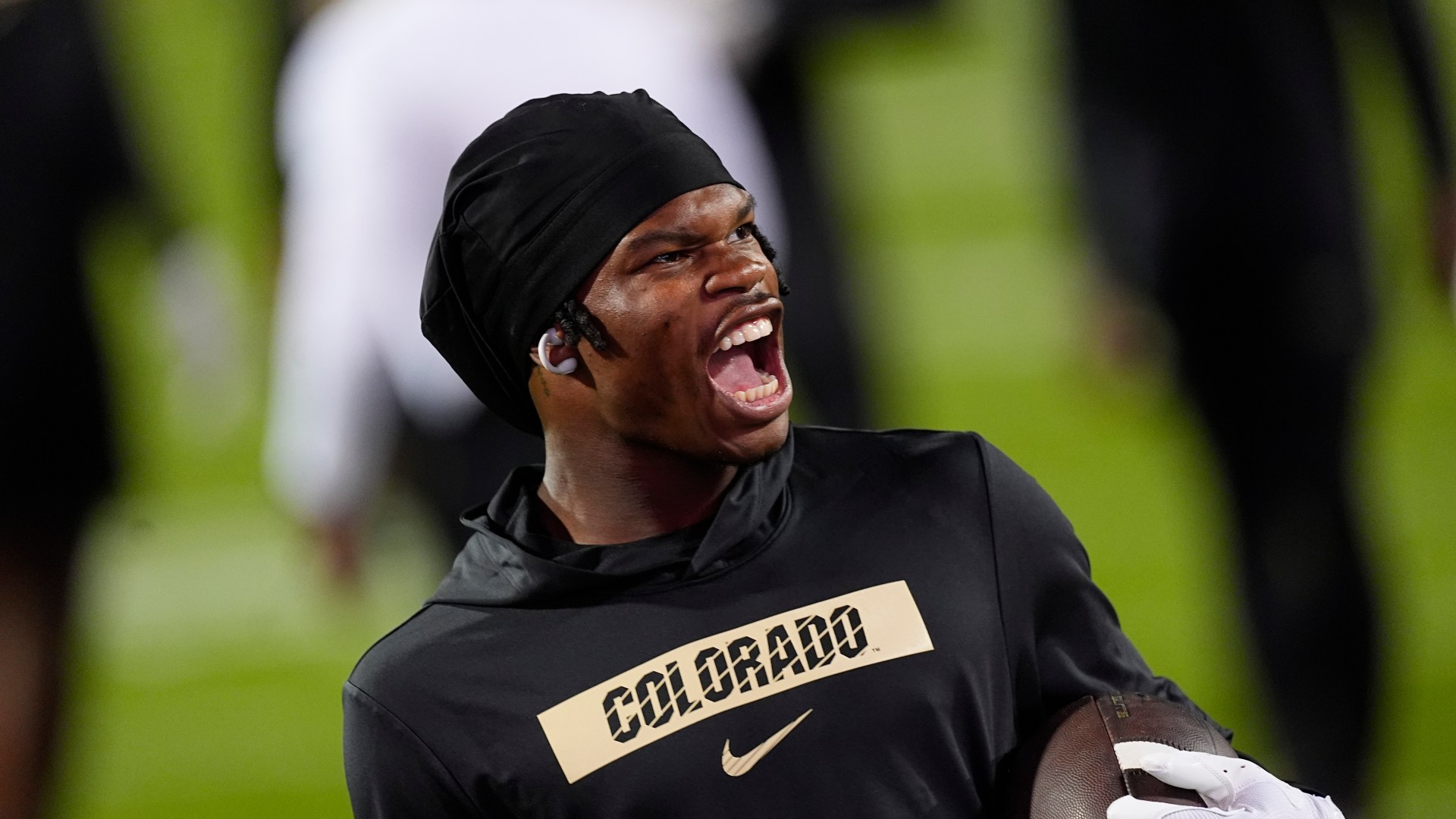 Colorado football player warming up.