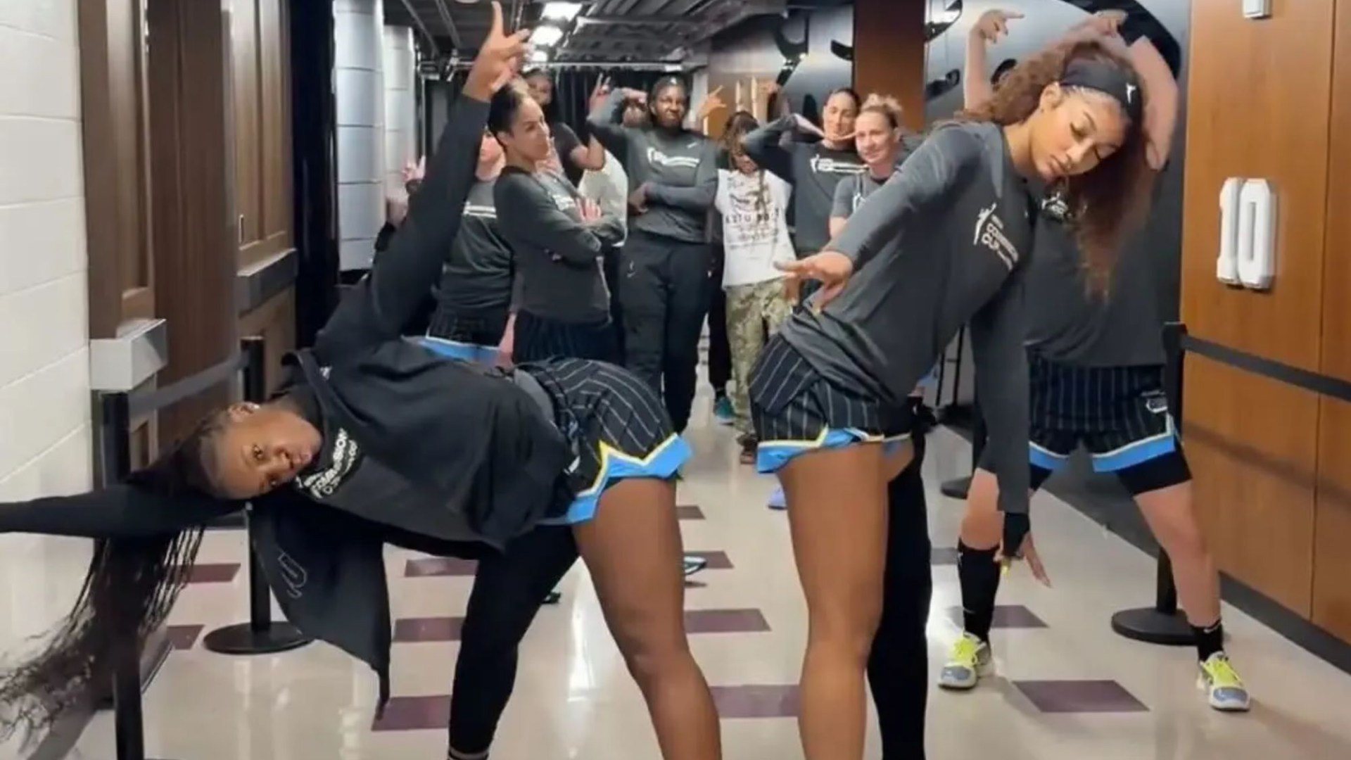 The choreography included a freeze second the place Angel Reese was on the entrance of the staff.