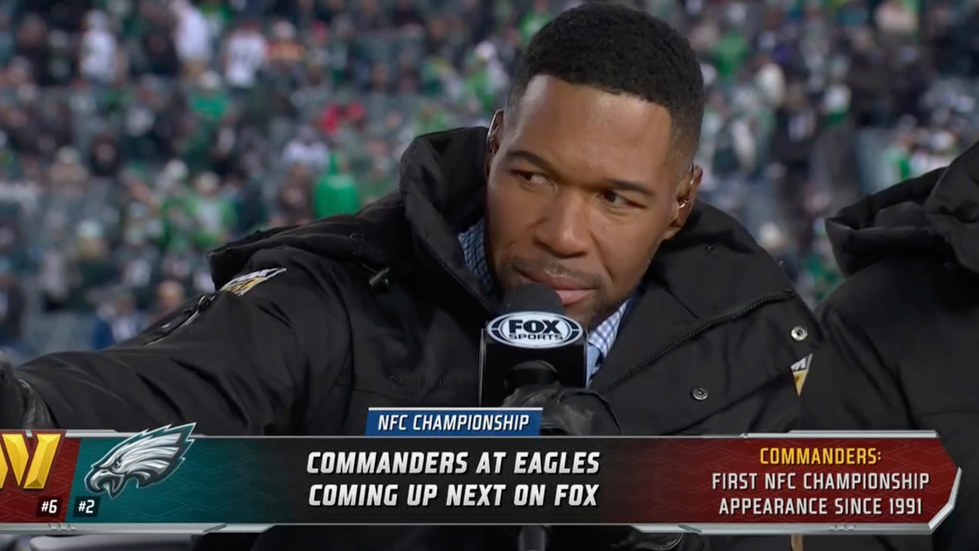 Sports Jan 28 2025 Michael Strahan fist bumps Terry Bradshaw on Fox NFL Sunday and tells him ‘you are a wise man’ after Tremendous Bowl name Read More